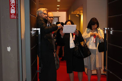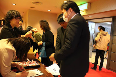 En la entrada había un montón de gente esperando, y de puertas para dentro también había gente haciendo cola, varias llevaban boina, así que eso sólo podía ser un concierto de Tsuyoshi o una convención de amigos de la boina. :-p