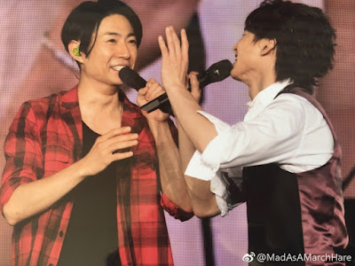 Nos cantó ao no jidai (que dicho sea de paso es la canción de un dorama que protagonizó hace mil años). Y yo estaba super conmovida "míralo, está medio sordo y el micro es una mierda pero aún así me sigue pareciendo el mejor cantante de la Johnnys". T_T