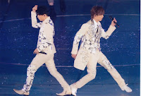 Y nada, que en el concierto meneó mucho el culo bailando (cosa que me parece muy bien, porque me gusta un montón), que nos hizo saltar en una canción, y SE NOTABA MUCHÍSIMO LA VIBRACIÓN EN EL PALCO!!! Yo estaba super preocupada por si se nos venía abajo el chiringuito. Pensaba: "espero que este edificio esté construido a prueba de terremotos y de conciertos de la Johnnys, porque el suelo está temblando... yo no quiero que se caiga esto, no quiero morir en un concierto de Tsuyoshi, que mínimo que morir en uno en el que por lo menos estén los 2 Kinkis!!! Ya no salto más, por si las moscas." >_<