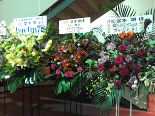 Escasos minutos después de las 18:30 la banda empezó a tocar y Tsuyoshi salió por la izquierda del escenario entre bailando y haciendo el tonto (no te sabría decir, con este hombre ambas cosas no son excluyentes). Nada más verle aparecer pensé "este es mi kinki-baka" y se me puso una sonrisa estúpida que sólo mis más ichibanes (o Koichi con armadura de samurai) pueden conseguir. :-p