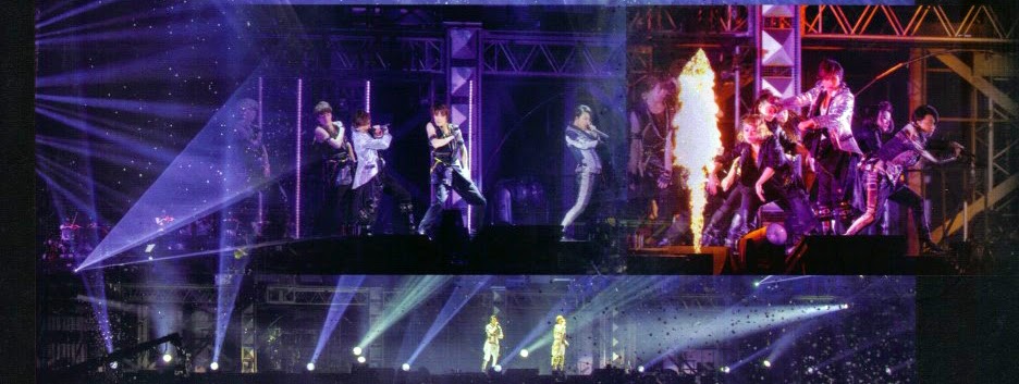 Antes de ir al concierto tenía miedo de que cuando anunciaron que finalmente Tsuyoshi no estaría, la gente se echara para atrás y no fuera, pensé que me encontraría huecos en los asientos, pero lo cierto es que no fue así para nada, el estadio estaba completo y les animamos y apoyamos como nunca en estos momentos complicados. Se oían gritos de apoyo a Tsuyoshi continuamente durante el concierto. Realmente me siento orgullosa de pertenecer a este fandom porque se portaron muy bien y estuvieron mucho más que a la altura de las circunstancias. ¡EVERYBODY SING WITH US, KINKI KIDS FOREVER. A las 6 en punto, al poco de que la gente se empezara a impacientar, a aplaudir y gritar "kinki, kinki" se escuchó la voz de Koichi por los altavoces del estadio, habló un poco y salió por una puerta que se abría en la pantalla central del escenario. Salió elegantísimo con su traje con pajarita y muy repeinado. :p Pidió disculpas por la ausencia física de Tsuyo en el estadio, se puso a explicar que ese día nos teníamos que esforzar todos para cantar con él porque estaba solo y por si se equivocaba y cantaba algo raro (al menos ya tiene asumido que no se sabe sus propias canciones, jajaja). Dijo que íbamos a empezar cantando Hey minna genki kai pero que le íbamos a cambiar la letra y decir "Hey Tsuyoshi...." Bueno, vale de acuerdo, le sobra una sílaba pero tú mandas tío. La cantamos (la letra sale en las pantallas) y se empieza a quejar de que los que están sentando en arena en las primeras filas NO HAN CANTADO, que se le han quedado mirando fijamente y no cantaban. Les imita poniendo cara de bobo con la boca abierta y les dice que les ha pillado, se hace el cabreado. Luego va y les suelta que no cantaban para poder mirarle y dice haciéndose el creído "realmente os gusto mucho, ¿eh?" A todo esto Tsuyoshi estaba en las pantallas.![]() |