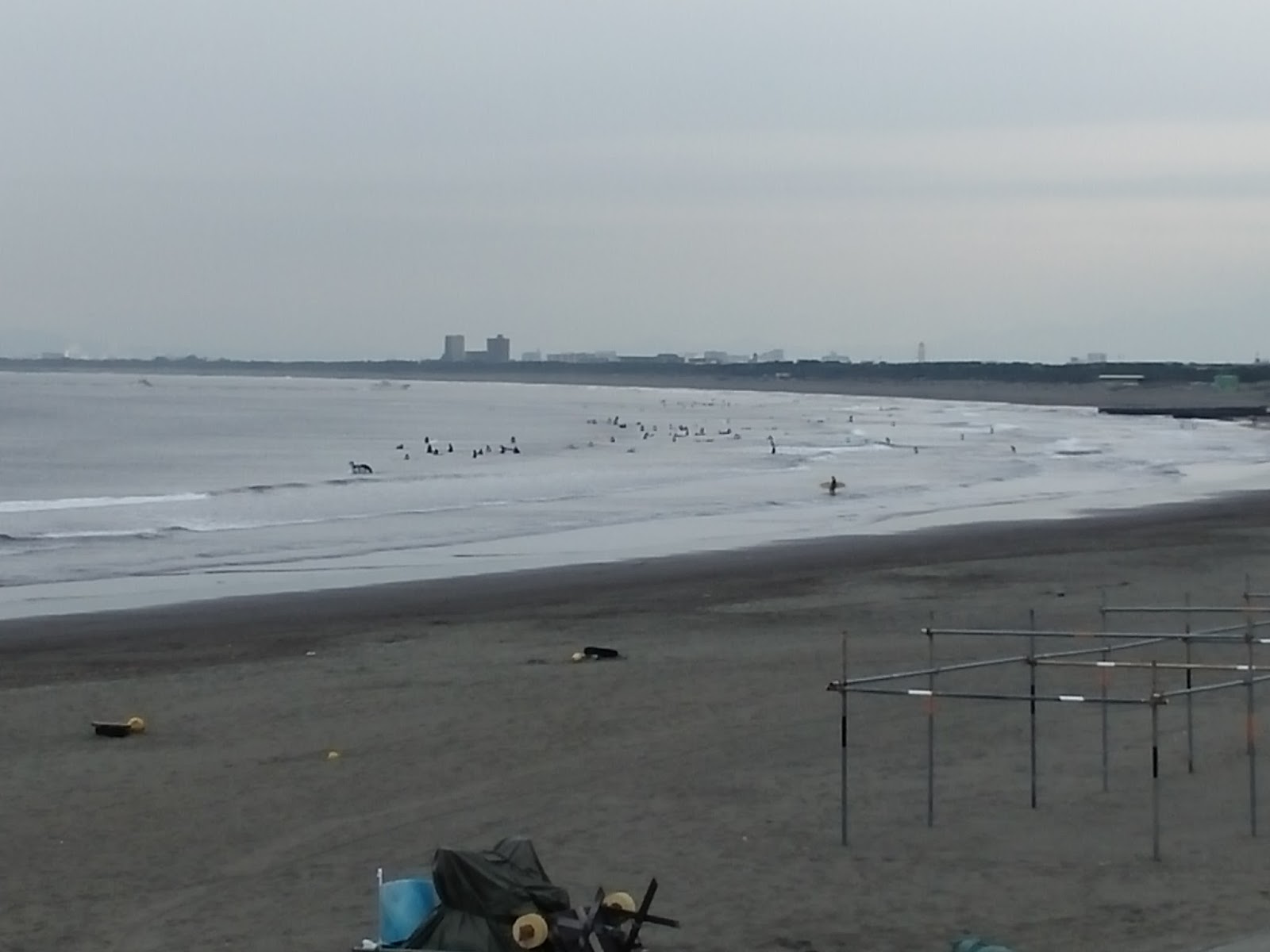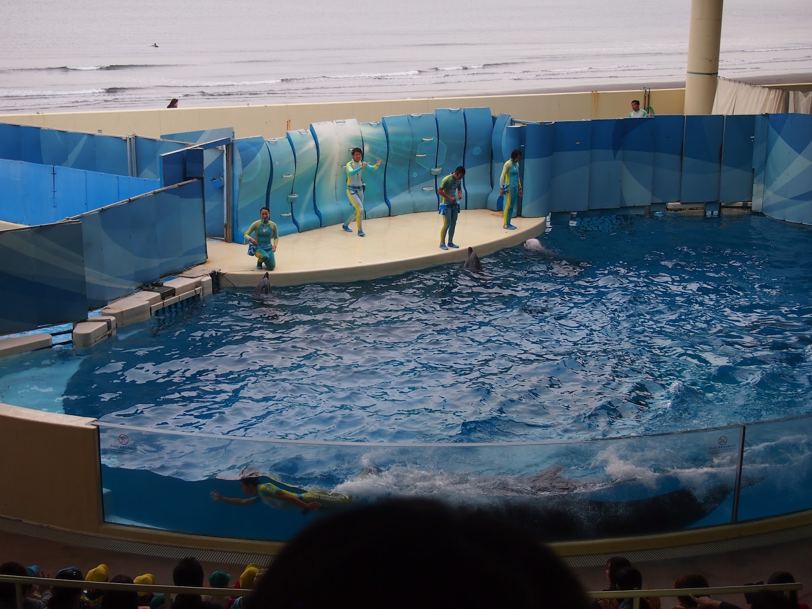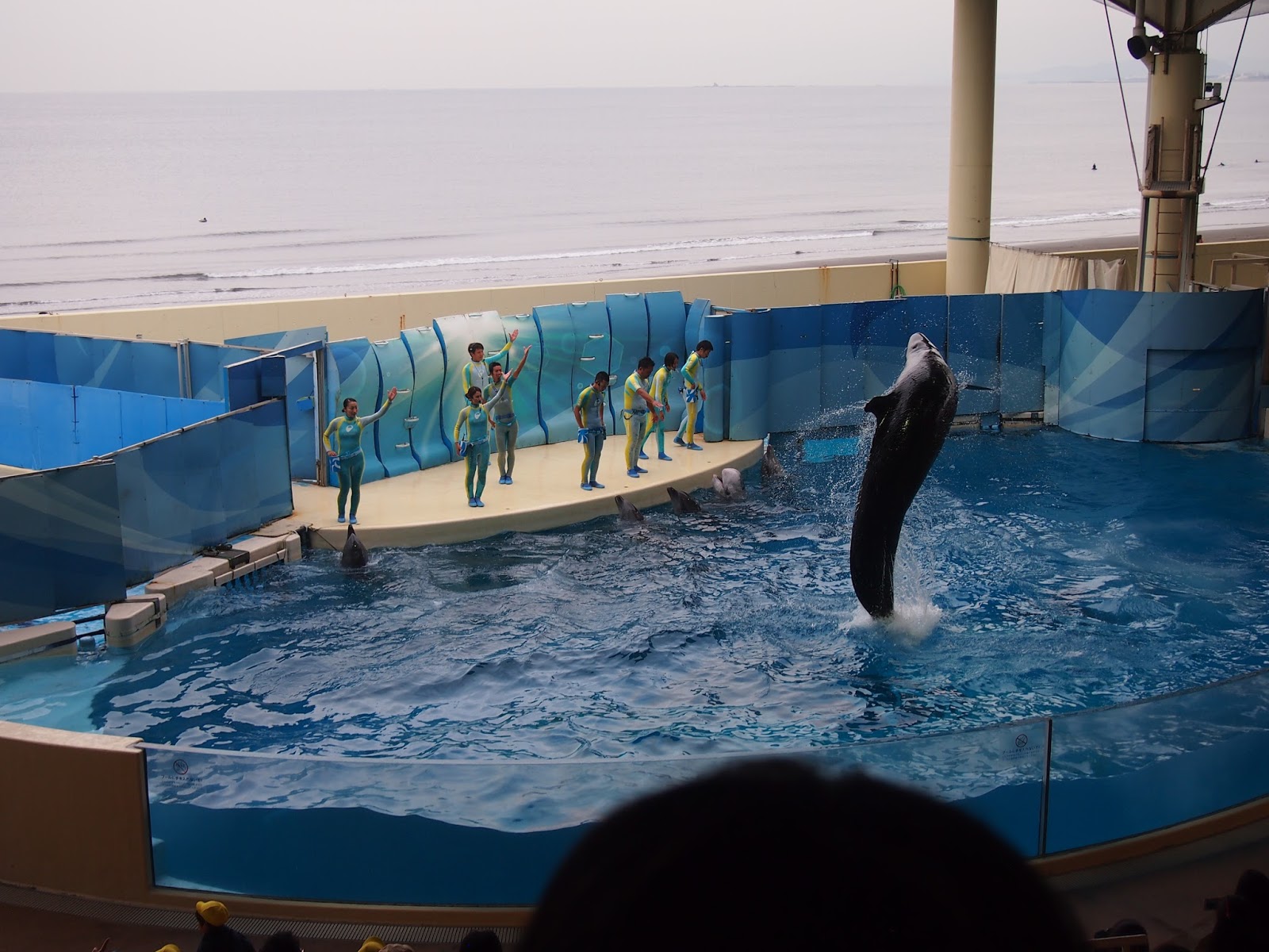 En el papel de la entrada ponía que era el hall de un lugar llamado "pacífico", en el paseo marítimo busqué un cartelón de esos de "usted está aquí" para orientarme y vi hasta el edificio ese llamado pacífico había más de un kilómetro a pie. Y ya venía de caminar un rato... total que con todo el calor del mundo, tirando de la maletita con ruedas y secándome con mi mini toalla de la prima de hello kitty me caminé todo el trecho, me tuve q subir las escaleras de a un cruce sobre la carretera que había pensando "espero haberme orientado antes con el mapa y estar yendo BIEN al sitio", de vez en cuando veía que volvían chicas con el uchiwa en la mano o algún otro good y pensé "si están tan lejos del estadio con esto, es que vienen de comprarlo". Seguí para delante y ya tras pasar un parque de atracciones, tiendas, hoteles, y dejara un lado lo que parecía un centro comercial muy pijo vi el sitio y me metí dentro, al menos en el edificio no hacía calor.