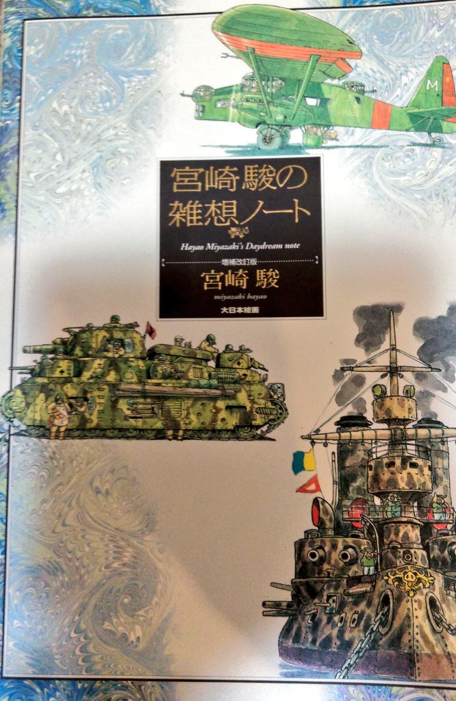 El contenido de este libro publicado en 1992 lo escribió entre los años 80 y principios de los 90. Tiene temática de la 2ª guerra mundial, en él hay muchos dibujos de aviones, barcos de guerra, ensayos sin acabar, ideas sueltas sin desarrollar y cosas así. Este butai es una de las historias que llegó a escribir enteras. Ya sabeis que al bueno de Miyazaki le mola mucho la segunda guerra mundial y varias películas de los estudios ghibli están ambientadas o relacionadas de algún modo con ella, (antes, durante y después). Como La tumba de las luciernagas, porco rosso, el viento se levanta. Lo cual no deja de ser irónico ya que el hombre es un más que reconocido pacifista y alguna vez ha soltado alguna fresca al actual primer ministro japonés en alguna entrevista que ha hecho por la idea que tiene Abe-san de querer rearmar nuevamente el ejército en Japón. Bueno, a veces pasa, por ejemplo yo me considero pacifista también, pero me gustan mucho las pelis y series de temas bélicos. ^_^U (Y tampoco me cae demasiado bien Abe-san, jajaja)