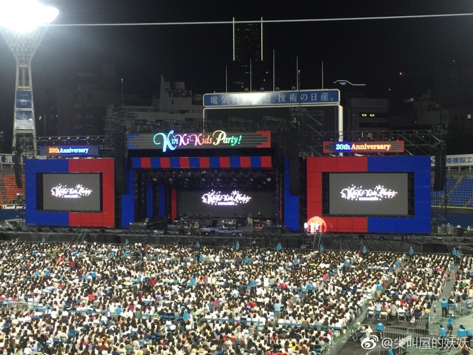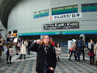 Antes de ir al concierto tenía miedo de que cuando anunciaron que finalmente Tsuyoshi no estaría, la gente se echara para atrás y no fuera, pensé que me encontraría huecos en los asientos, pero lo cierto es que no fue así para nada, el estadio estaba completo y les animamos y apoyamos como nunca en estos momentos complicados. Se oían gritos de apoyo a Tsuyoshi continuamente durante el concierto. Realmente me siento orgullosa de pertenecer a este fandom porque se portaron muy bien y estuvieron mucho más que a la altura de las circunstancias. ¡EVERYBODY SING WITH US, KINKI KIDS FOREVER. A las 6 en punto, al poco de que la gente se empezara a impacientar, a aplaudir y gritar "kinki, kinki" se escuchó la voz de Koichi por los altavoces del estadio, habló un poco y salió por una puerta que se abría en la pantalla central del escenario. Salió elegantísimo con su traje con pajarita y muy repeinado. :p Pidió disculpas por la ausencia física de Tsuyo en el estadio, se puso a explicar que ese día nos teníamos que esforzar todos para cantar con él porque estaba solo y por si se equivocaba y cantaba algo raro (al menos ya tiene asumido que no se sabe sus propias canciones, jajaja). Dijo que íbamos a empezar cantando Hey minna genki kai pero que le íbamos a cambiar la letra y decir "Hey Tsuyoshi...." Bueno, vale de acuerdo, le sobra una sílaba pero tú mandas tío. La cantamos (la letra sale en las pantallas) y se empieza a quejar de que los que están sentando en arena en las primeras filas NO HAN CANTADO, que se le han quedado mirando fijamente y no cantaban. Les imita poniendo cara de bobo con la boca abierta y les dice que les ha pillado, se hace el cabreado. Luego va y les suelta que no cantaban para poder mirarle y dice haciéndose el creído "realmente os gusto mucho, ¿eh?" A todo esto Tsuyoshi estaba en las pantallas.![]() |