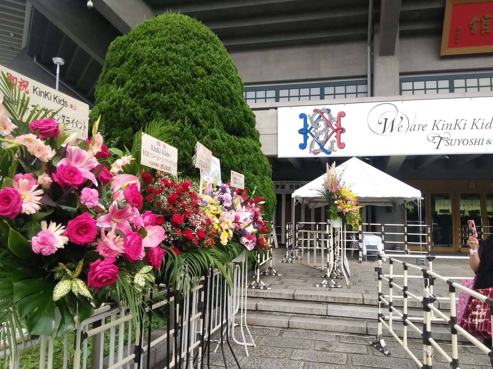 Escasos minutos después de las 18:30 la banda empezó a tocar y Tsuyoshi salió por la izquierda del escenario entre bailando y haciendo el tonto (no te sabría decir, con este hombre ambas cosas no son excluyentes). Nada más verle aparecer pensé "este es mi kinki-baka" y se me puso una sonrisa estúpida que sólo mis más ichibanes (o Koichi con armadura de samurai) pueden conseguir. :-p