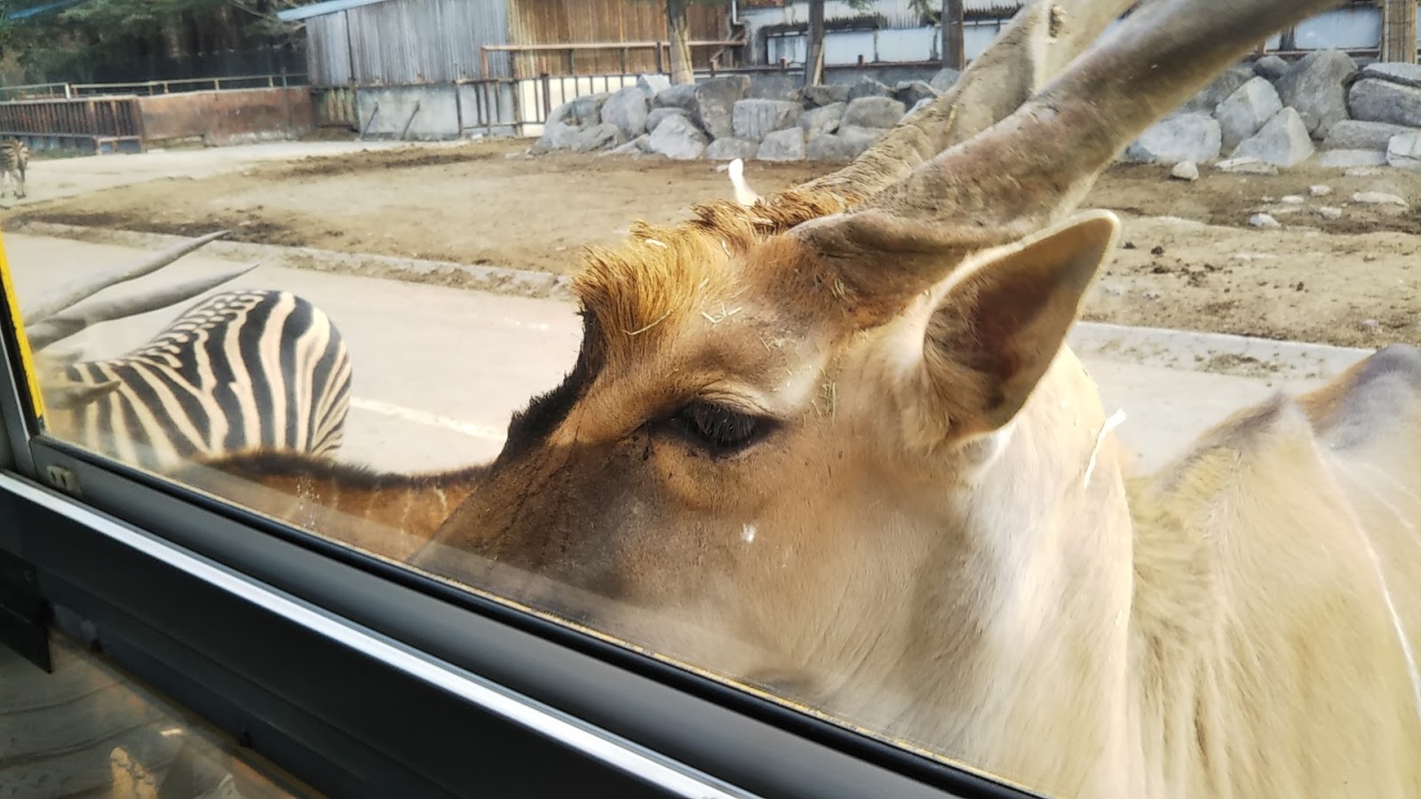 Dec. 12th, 2018 12:30 amEste dromedario venía corriendo, no sé por qué y le tomé la foto pasando justo por el lateral del autobús, el cabrón corría mucho.