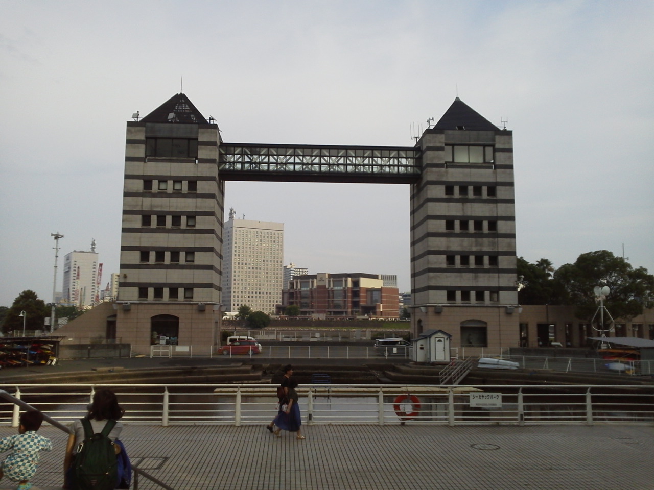 En el papel de la entrada ponía que era el hall de un lugar llamado "pacífico", en el paseo marítimo busqué un cartelón de esos de "usted está aquí" para orientarme y vi hasta el edificio ese llamado pacífico había más de un kilómetro a pie. Y ya venía de caminar un rato... total que con todo el calor del mundo, tirando de la maletita con ruedas y secándome con mi mini toalla de la prima de hello kitty me caminé todo el trecho, me tuve q subir las escaleras de a un cruce sobre la carretera que había pensando "espero haberme orientado antes con el mapa y estar yendo BIEN al sitio", de vez en cuando veía que volvían chicas con el uchiwa en la mano o algún otro good y pensé "si están tan lejos del estadio con esto, es que vienen de comprarlo". Seguí para delante y ya tras pasar un parque de atracciones, tiendas, hoteles, y dejara un lado lo que parecía un centro comercial muy pijo vi el sitio y me metí dentro, al menos en el edificio no hacía calor.