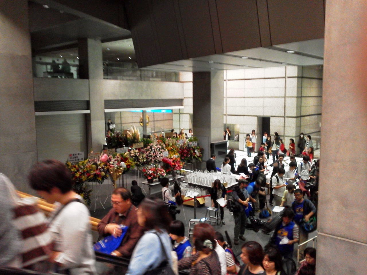 En la entrada había un montón de gente esperando, y de puertas para dentro también había gente haciendo cola, varias llevaban boina, así que eso sólo podía ser un concierto de Tsuyoshi o una convención de amigos de la boina. :-p