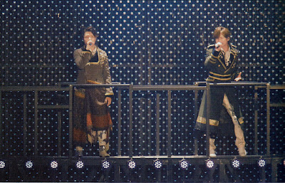 Me gustaría destacar antes de acabar, el vestuario, tanto el de ellos, que no estaba tan mal comparado con las mierdas que les han llegado a poner otras veces, sobre todo a Tsuyo que... menudas pintas lleva en algún tour. Pero la ropa de los bailarines, y de los músicos que había a ratos en el escenario TAMBIÉN MOLABA MUCHO. Al principio llevaban una ropa como muy "versallesca" Un rollo así un poco rococó. Muchas levitas, botones dorados, faldas con mucho relleno por debajo. Otro rato las bailarinas iban vestidas como tipo charlestón años 20, y también era muy vistoso.